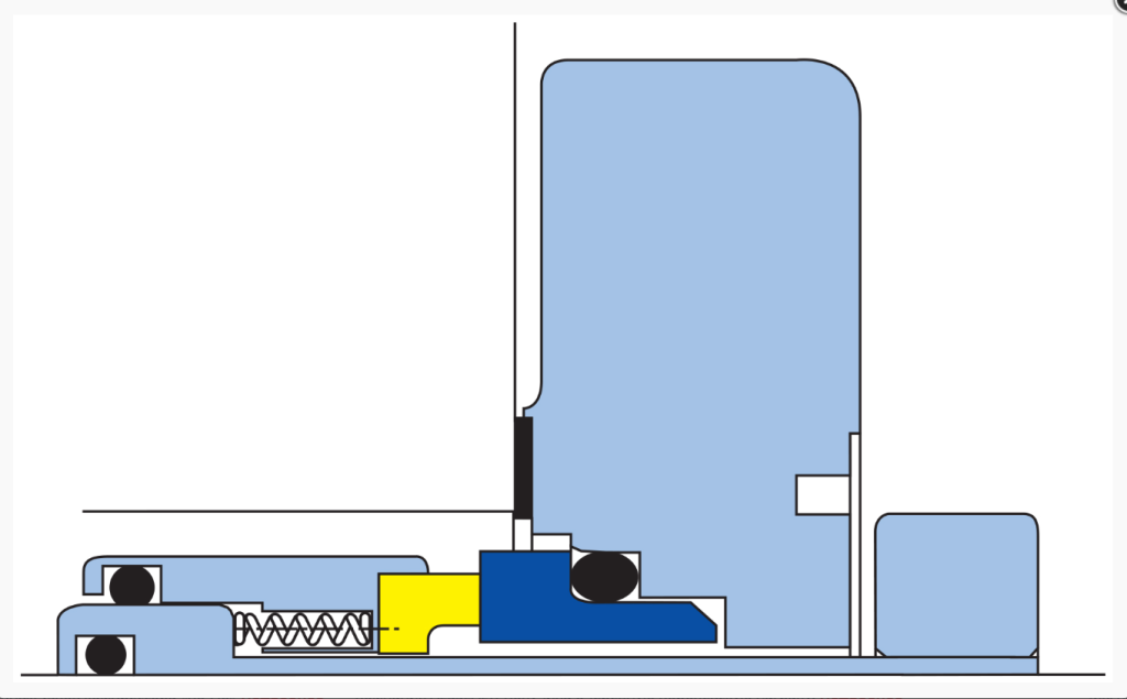 • Одинарное торцевое уплотнение картриджного типа с подпружиненной вращающейся частью;