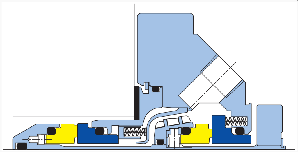 Двойное торцевое уплотнение картриджного типа с подпружиненной неподвижной частью;