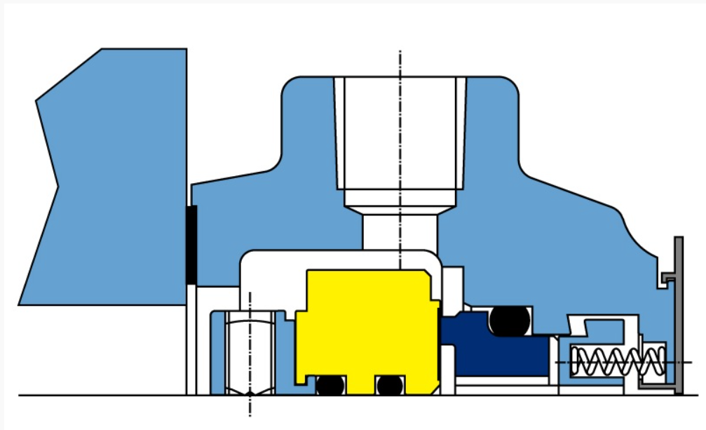• Одинарное торцевое уплотнение картриджного типа с подпружиненной неподвижной частью;